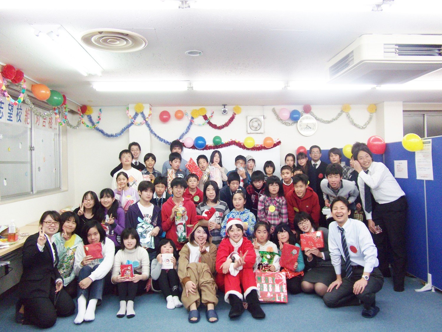勉強も遊びも思い切りやろうという想いのもと、毎年クリスマス会を開いています。小学校・中学校全体で合計20〜50人くらい参加してくださっています。毎年2学期の終業式の日の午後2-4時、12月24日もしくは25日に行っています。